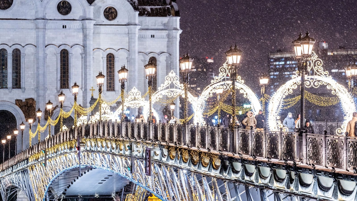 Пролеты Третьяковского и Садовнического мостов декорировали гирляндами с теплым светом. Патриарший мост украсили ажурными световыми браслетами на пешеходной части. На Чугунном мосту появились гирлянды со снежинками, а на Парящем мосту — геометрические световые узором.