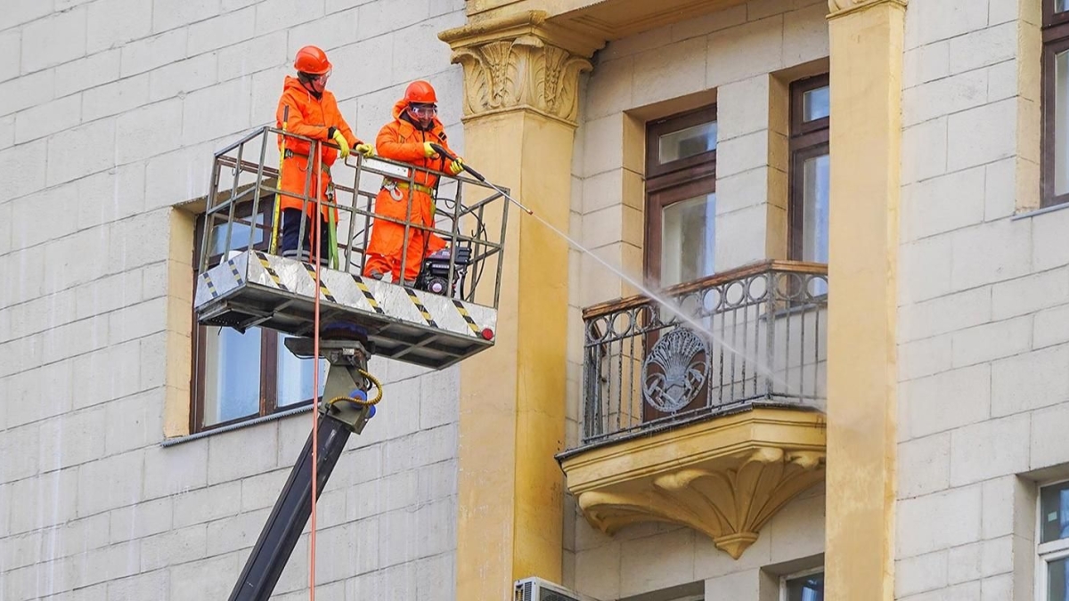 Москва. В Москве стартовали работы по промывке фасадов зданий после зимы, сообщили в столичном правительстве.