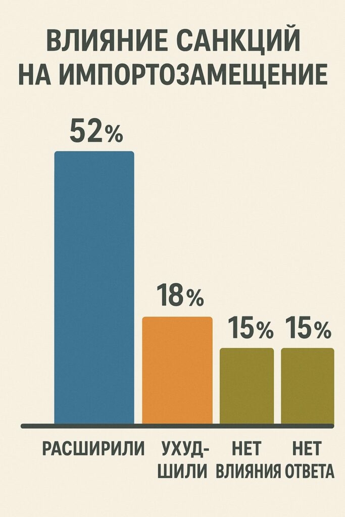 Например, под наибольшим ударом ограничительной политики оказался промышленный сектор, который потерял доступ к зарубежным технологиям. На этом фоне предприятия были вынуждены перейти к внутренним процессам замещения импортной продукции собственными разработками.