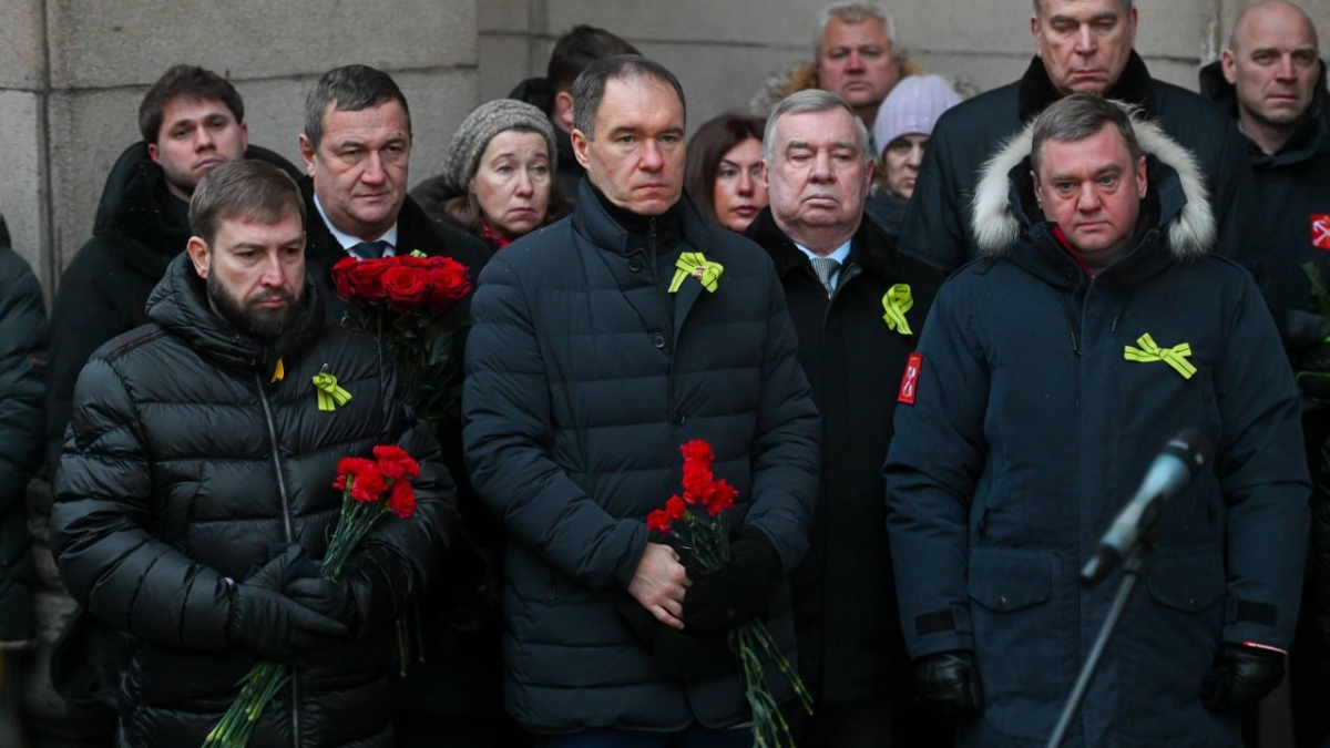 Санкт-Петербург. Вице-губернатор Санкт-Петербурга Кирилл Поляков и врио председателя Комитета по транспорту Дмитрий Ваньчков приняли участие в торжественно-траурном митинге и в церемонии возложения цветов к мемориальной доске «Героизму и мужеству ленинградцев».