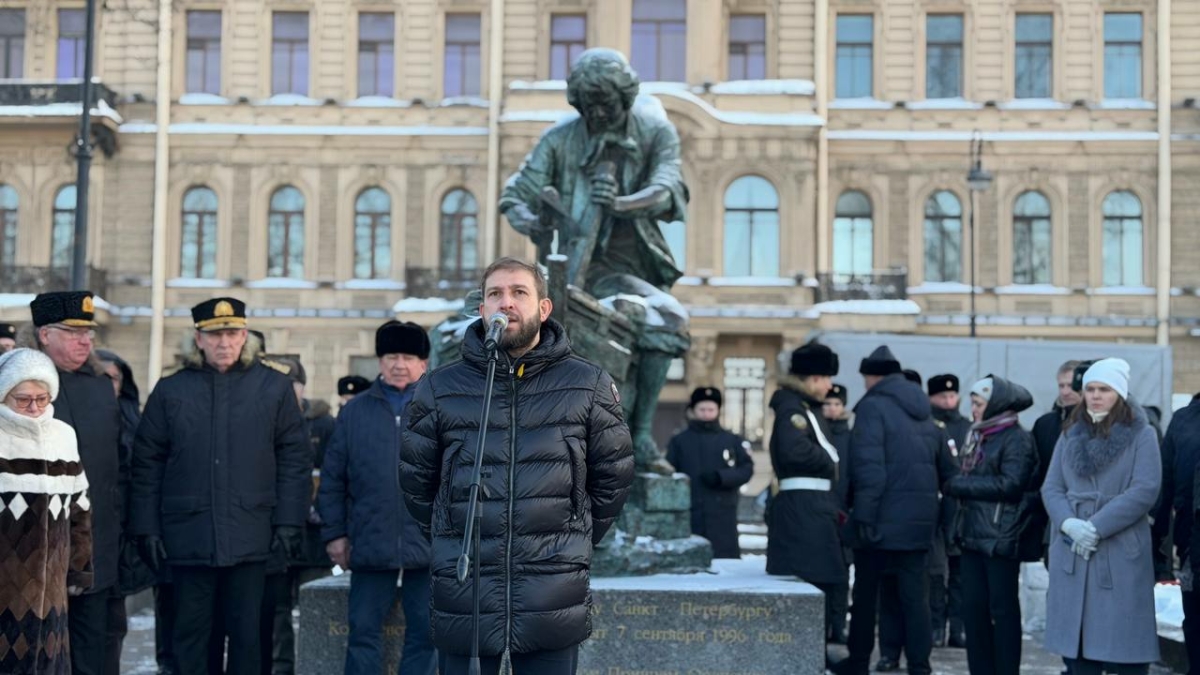 Санкт-Петербург. Дмитрий Ваньчков принял участие в торжественном возложении цветов у памятника Царю Плотнику на Адмиралтейской набережной.