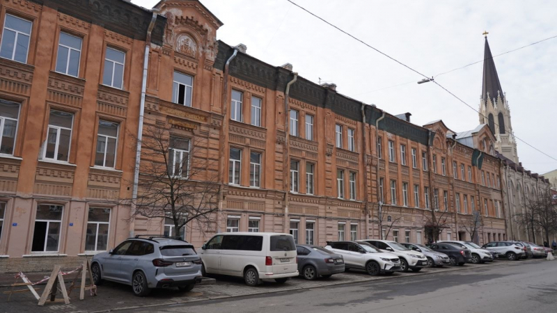 Церковь при ней освятили в 1856 году. Здание потом перестраивали, в нем был лазарет, техникум, в войну — воинская часть. Сейчас оно передано институту РАНХиГС. Реставрацию планируют закончить к середине 2029 года.