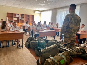 Военнослужащие батальона Росгвардии провели урок мужества для учеников астраханской школы №40. На встрече ребятам рассказали о службе участников СВО и показали элементы боевой экипировки.