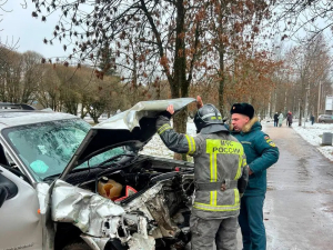 Спасатели МЧС деблокировали пострадавших после столкновения в Киришах