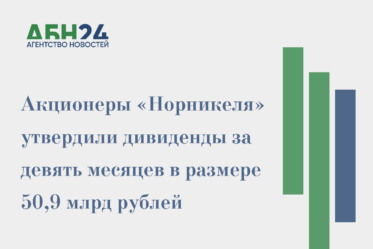 Акционеры «Норникеля» утвердили дивиденды за девять месяцев в размере 50,9 млрд рублей