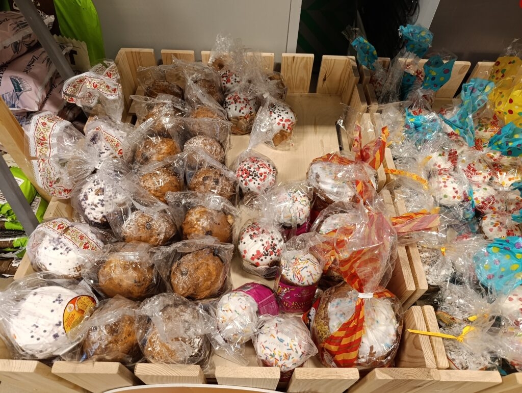 В сетевых супермаркетах » Магнит» и «Пятерочка» все эти дни среднее количество посетителей, возможно, и выше, но особого ажиотажа не наблюдается. Выбор пасхальной снеди впечатляет. Куличи продаются весом от 120 до 400 граммов. Изделия большего веса тоже можно найти, но не в каждом магазине. Наверное, спрос на «богатырей» заметно меньше.